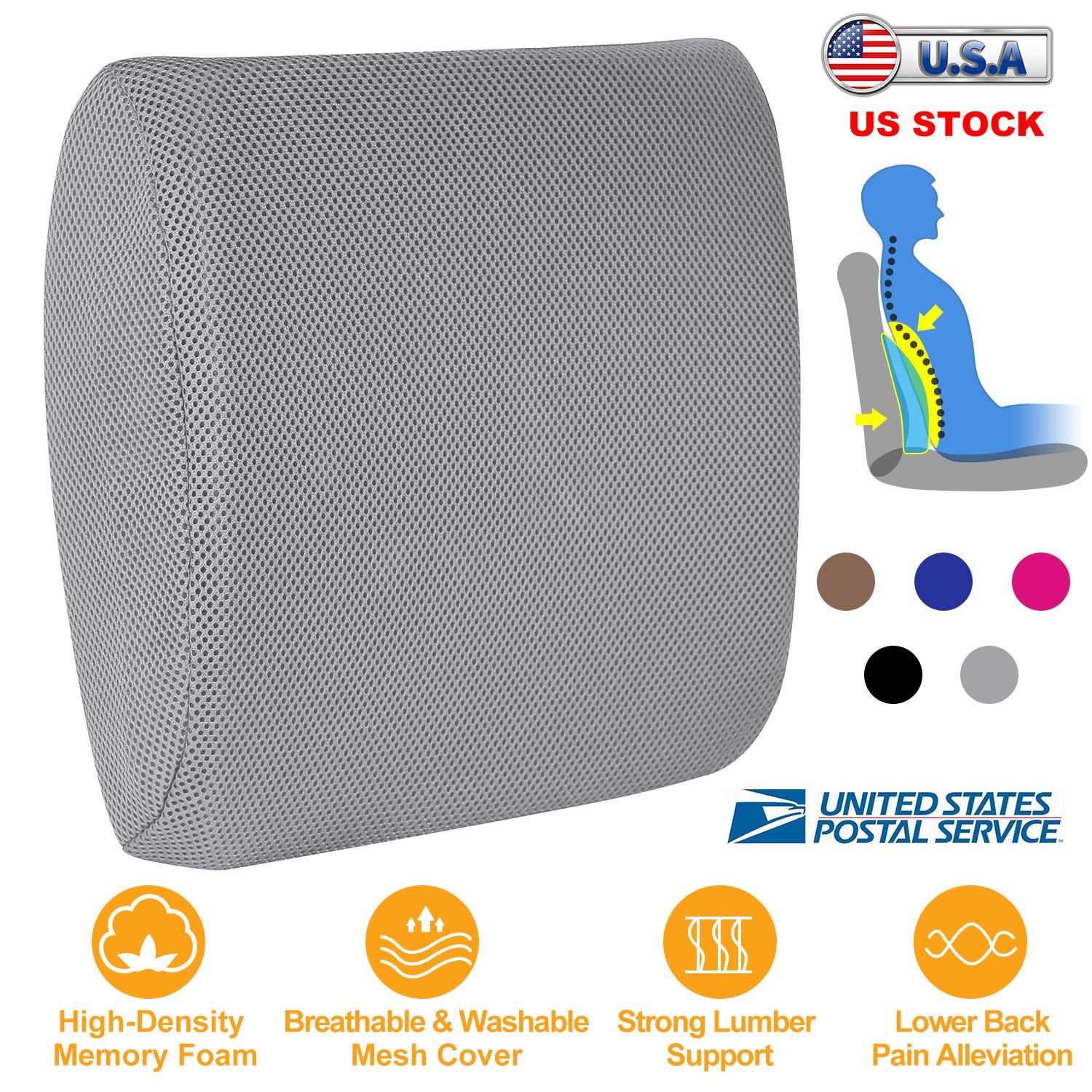 Our reliable memory foam lumbar support back cushion pillow, made from premium high-density memory foam materials and adopting ergonomic streamline molded shape design, is designed to help with people who suffer from lower back pain caused by long sitting time and driving, and meantime promote a health posture through supporting your lumber and lower back to achieve spinal alignment. Additionally, it comes with a breathable and washable mesh cover to accelerate air circulation and keep you cool and comfortable all day and it can be used on any office chair, computer chair, armchair, wheelchair, car seat etc.