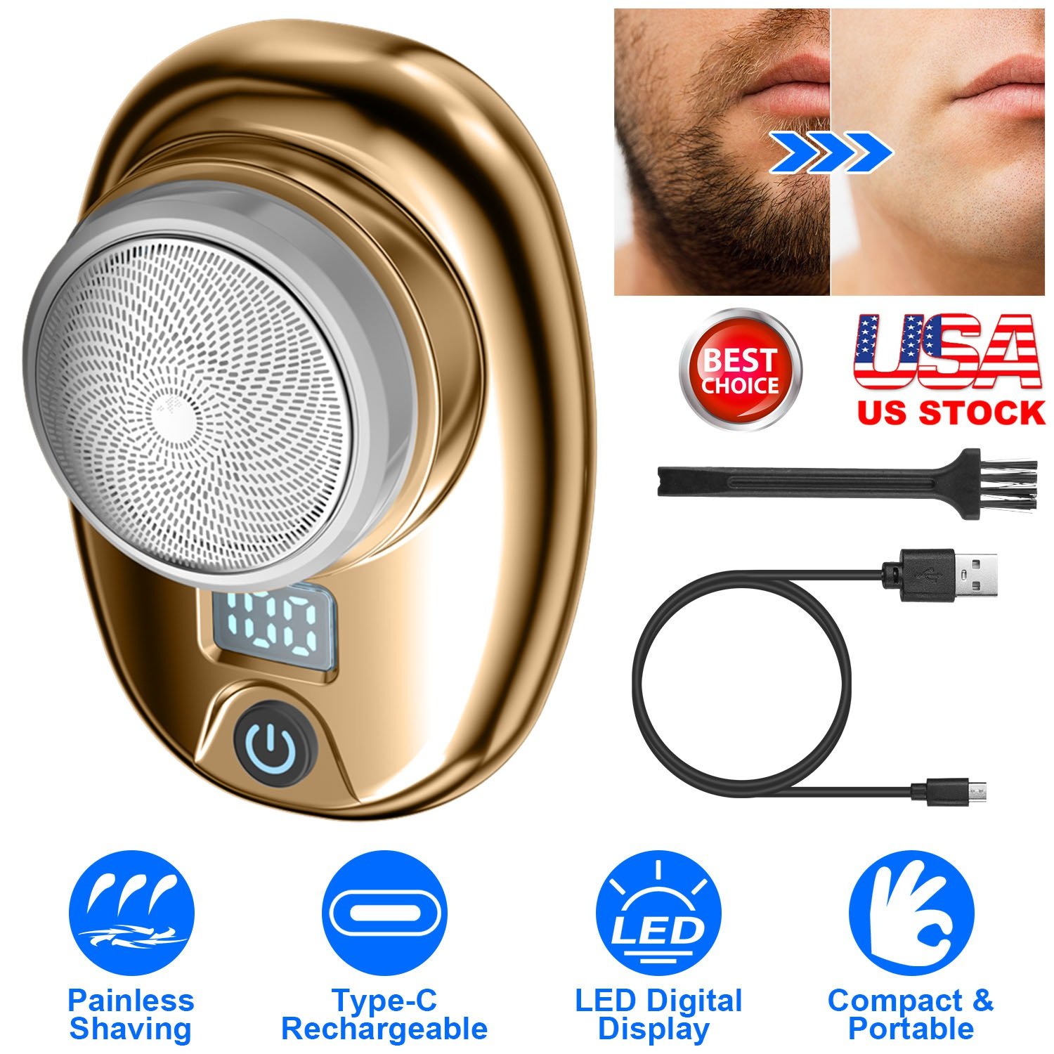 Our electric men\'s shaver features 6 sharp blades under an ultra-thin steel net for precise and painless shaving. Powerful and low power-consumption motor ensures quiet operation. This compact and portable shaver weighs only 0.17lbs and measures 2.95x2.16x1.57in in size, making it easy to store in your pocket or bag for home, travel, office, or car use. Type-C rechargeable battery is convenient to recharge via laptop, power bank, adapter and more. Available in 3 different colors, this portable electric men shaver is an ideal gift to show your love and concern for your father or lover in special days.